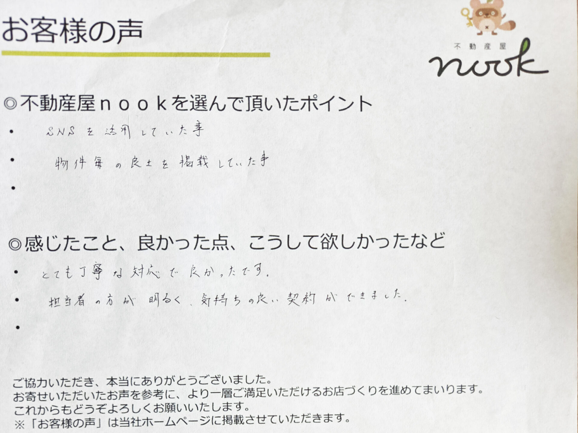 不動産のご購入やご売却でお取引いただいたお客様に、任意の満足度調査アンケートを実施し、サービスの向上に役立てています。そんなお客様のリアルな声をご紹介します。