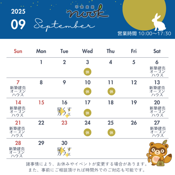 9月の営業カレンダーをどうぞ。
