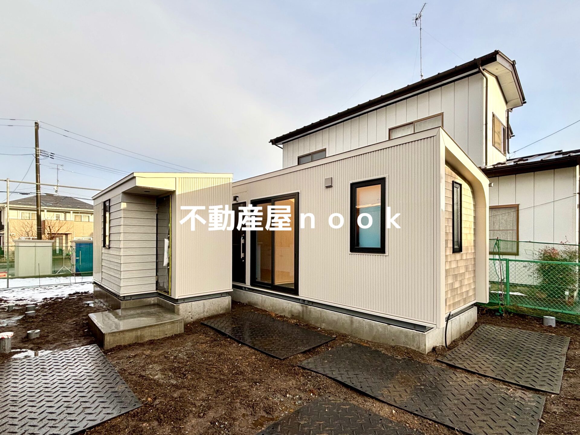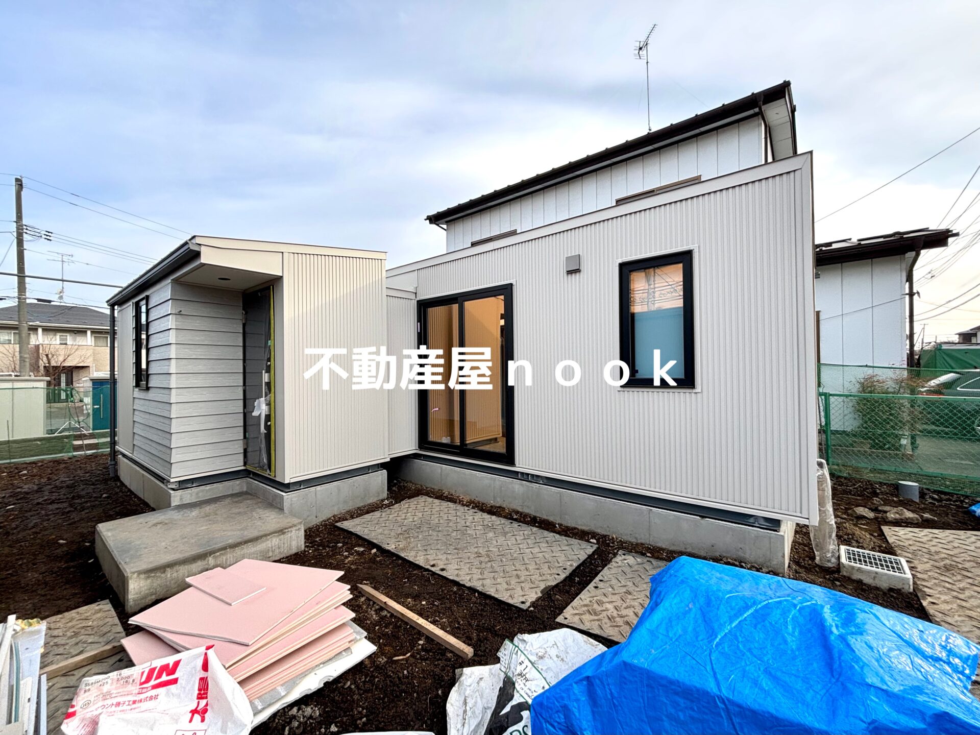 ※外構は駐車場スペース砕石仕上げ、その他は防草シート、化粧砕石となります。