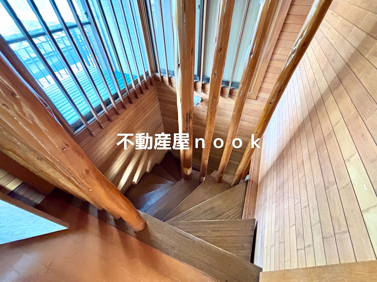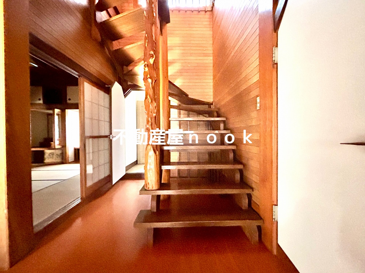 無垢材を贅沢に使用した幅1.2mの階段と開放的な吹き抜けが印象的な邸宅です。